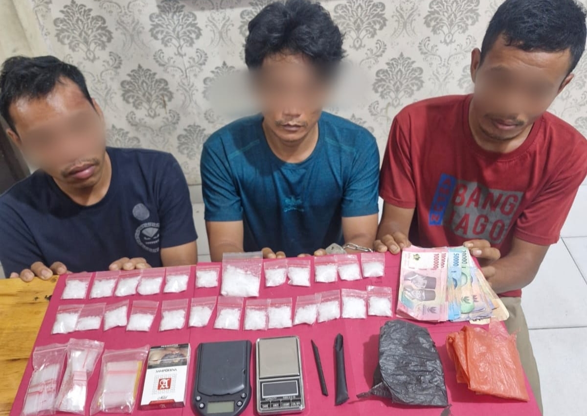 Dari tangan ketiga pelaku, tim menyita 25 paket sabu dengan berat kotor 132,2 gram, 3 plastik klip bening, 2 timbangan digital, 4 unit handphone berbagai merk serta sejumlah uang tunai hasil transaksi narkoba.