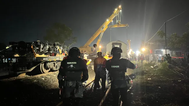 Personel Brimob tiba di lokasi sekitar pukul 20.15 WIB dan langsung berkoordinasi dengan pihak PT Kereta Api Indonesia (KAI), kepolisian setempat, serta instansi terkait lainnya. Mereka kemudian melakukan pengaturan arus lalu lintas di sekitar lintasan yang terdampak akibat dua gerbong bagian belakang kereta yang anjlok.