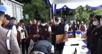 “Sebelas tersangka yang hadir saat ini adalah mereka yang barang buktinya dimusnahkan hari ini. Semua merupakan tahanan Bareskrim Polri,” ujar Kombes Audie.