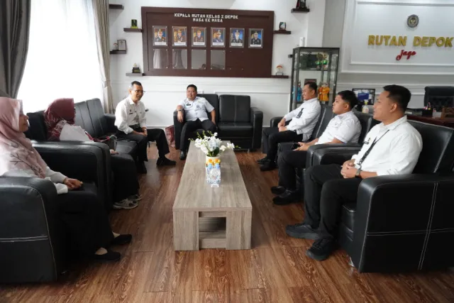 Depok – Pagi ini Rutan Kelas I Depok menerima kunjungan dari Kepala Dinas Perdagangan dan Industri (Disdagin) Kota Depok, Dudi Mi’Raz, beserta jajaran pada Rabu. Kunjungan tersebut disambut langsung oleh Kepala Rutan Kelas I Depok, Agus Imam Taufik, bersama pejabat manajerial dan staf. Pertemuan ini berlangsung hangat dan penuh semangat kolaborasi di ruang kerja Karutan. (11/12/2025)