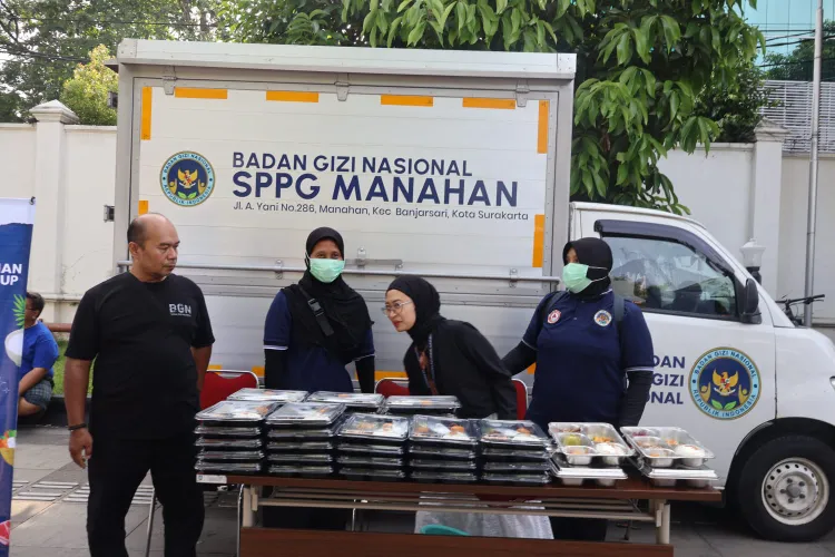 Surakarta — Satuan Pelayanan Pemenuhan Gizi (SPPG) Kota Solo bersama Pemerintah Kota Surakarta menggelar kegiatan Showcase dan Pembagian Program Makan Bergizi Gratis (MBG) pada gelaran Car Free Day (CFD) di halaman rumah dinas Wali Kota Solo, Loji Gandrung, Minggu (23/11).