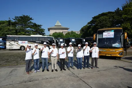 Untuk memastikan perjalanan berlangsung aman dan tertib, seluruh proses keberangkatan dilengkapi dengan pengawasan operasional di lapangan, ramp check Kendaraan Bus dan 51 crew Bus yang telah lolos cek kesehatan, dan safety briefing bagi peserta sebelum keberangkatan.