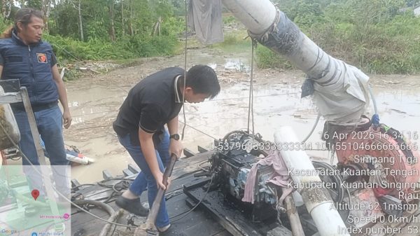 KUANSING – Satreskrim Polres Kuantan Singing bersama Polsek Kuantan Tengah kembali melakukan penertiban terhadap aktivitas Penambangan Tanpa Izin (PETI), Kamis (16/4/2026) sore.